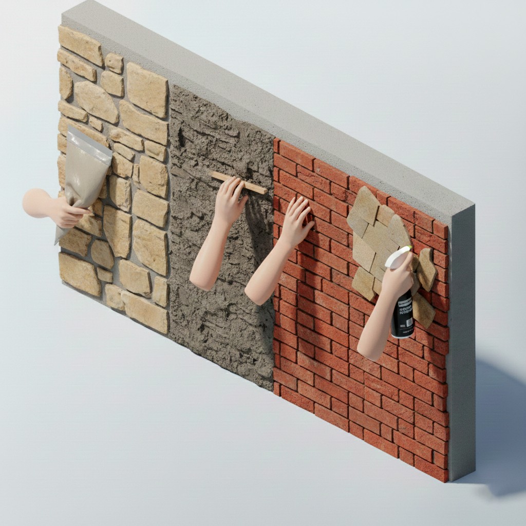 Jointing: Use a grout bag or spatula. For a "dry-stack" look, let the squeezed-out mortar dry for 12-18 hours before cleaning with a wooden stick.