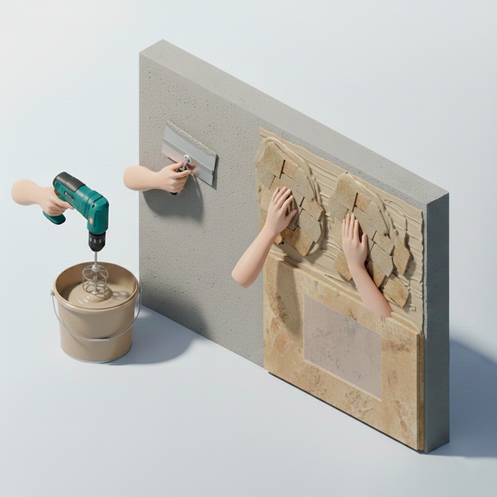 Adhesive: Use cement-based tile adhesive (for stone/concrete) or gypsum adhesive (for gypsum products).